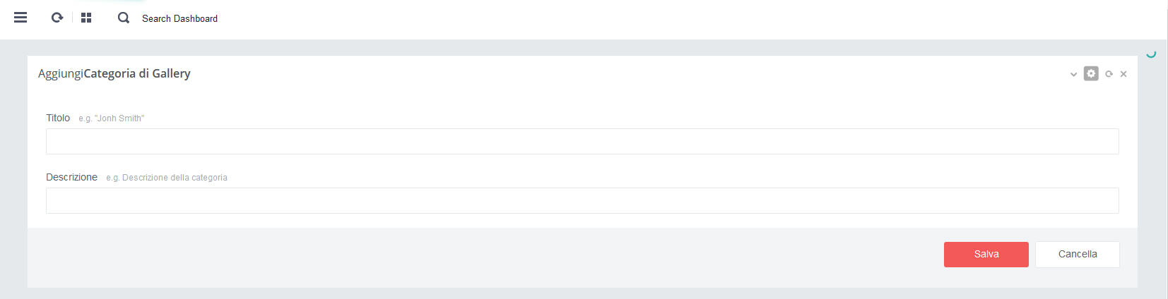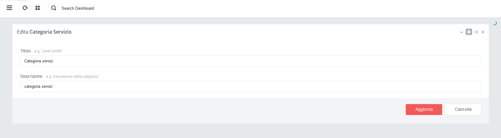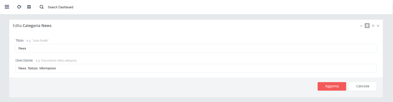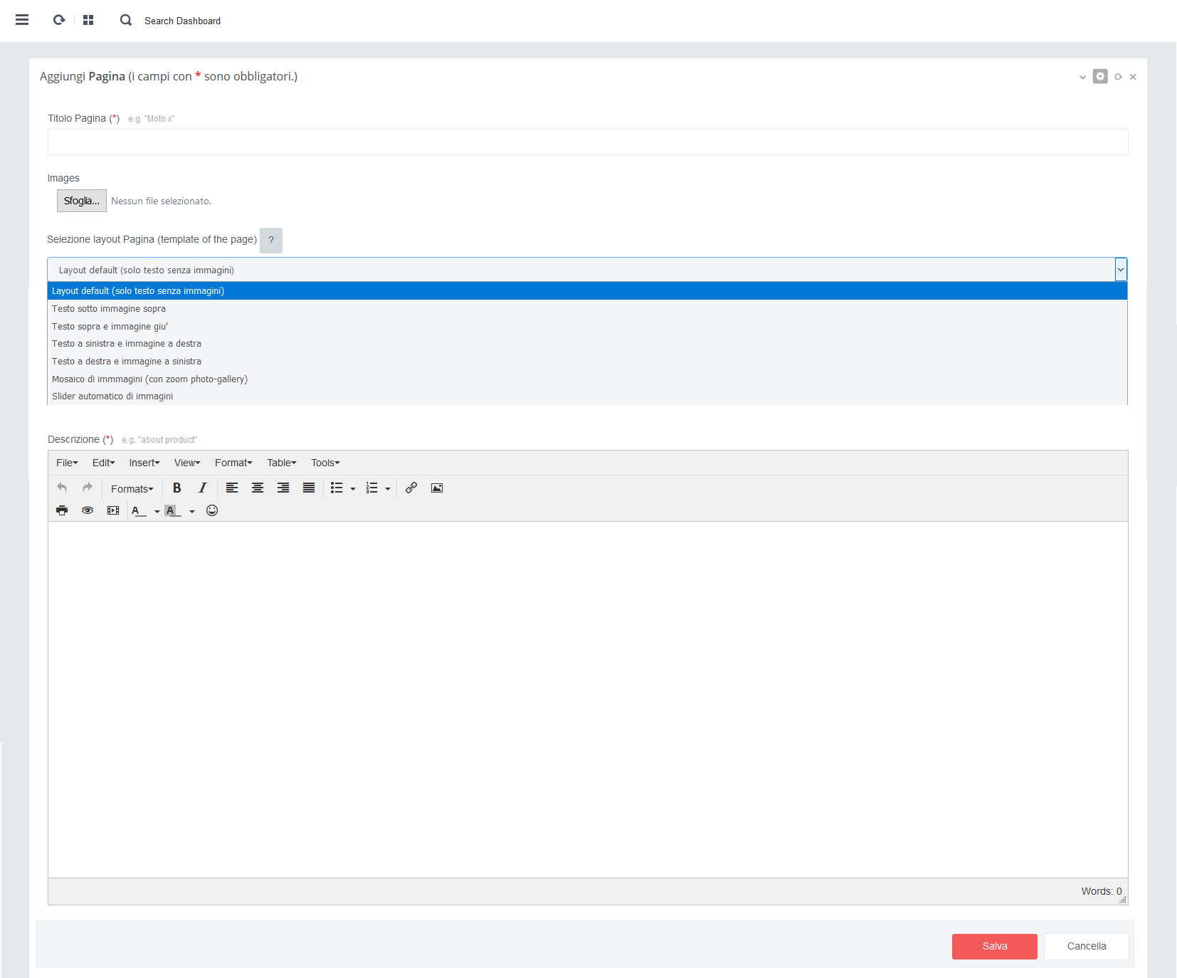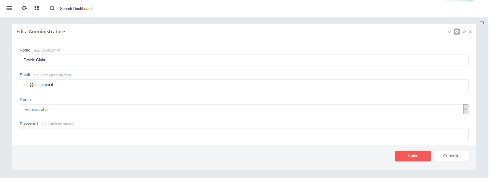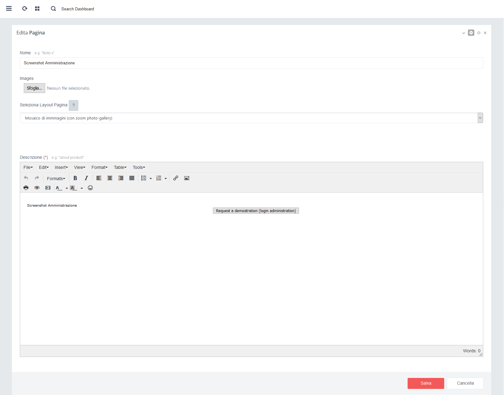 - - Click su pulsante rosso 'Salva' per salvare i dati alla pagina in aggiornamento