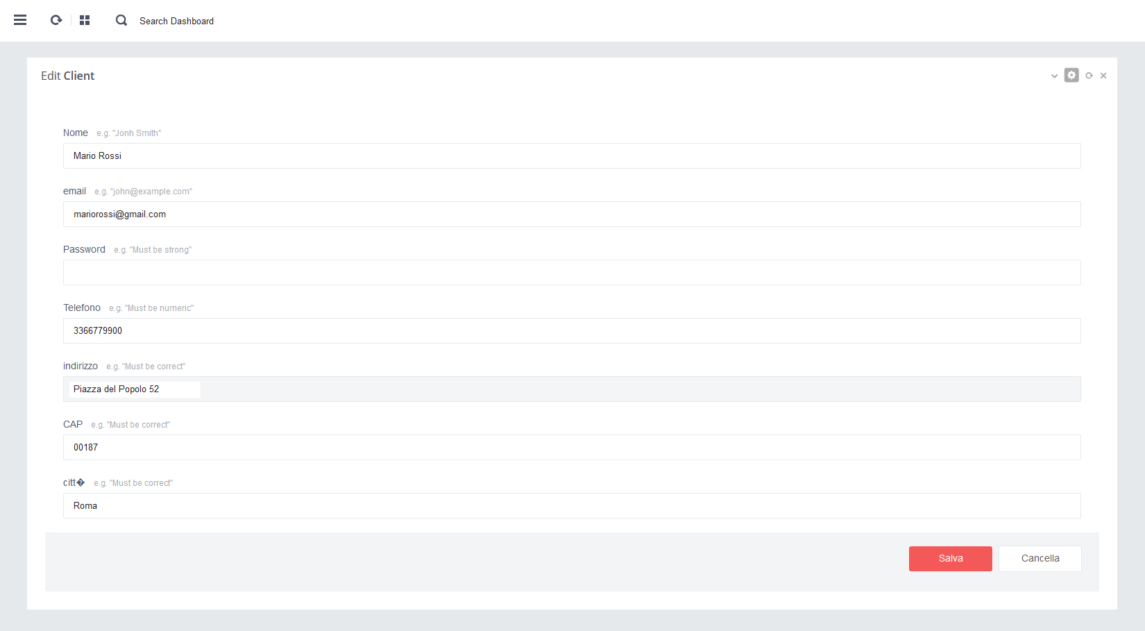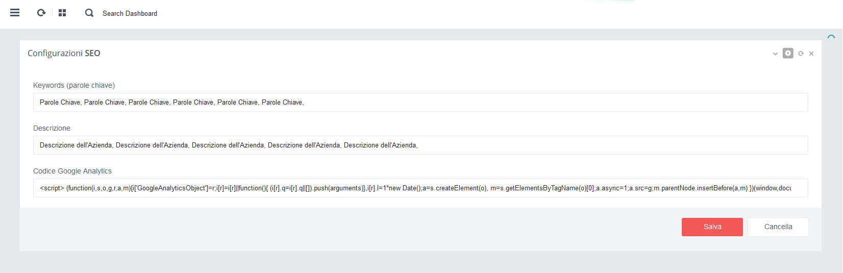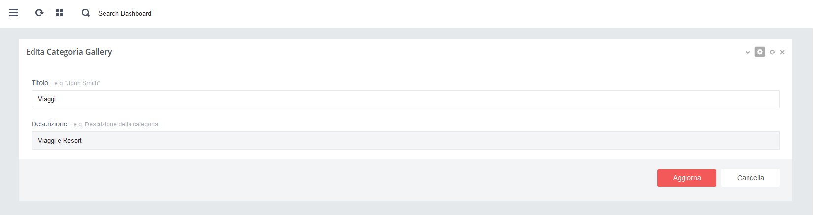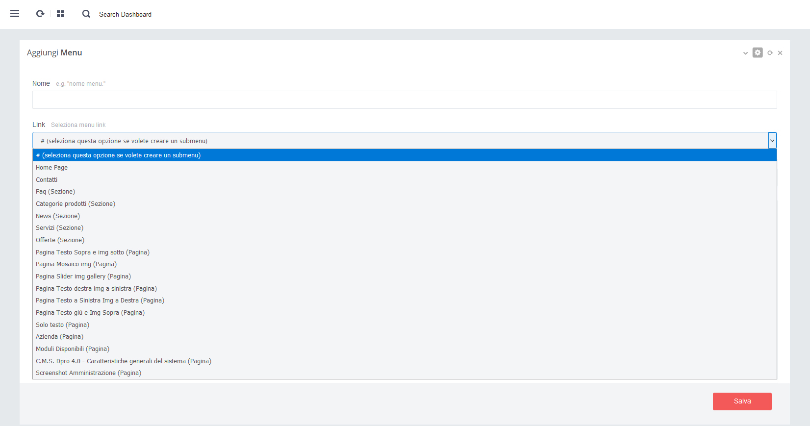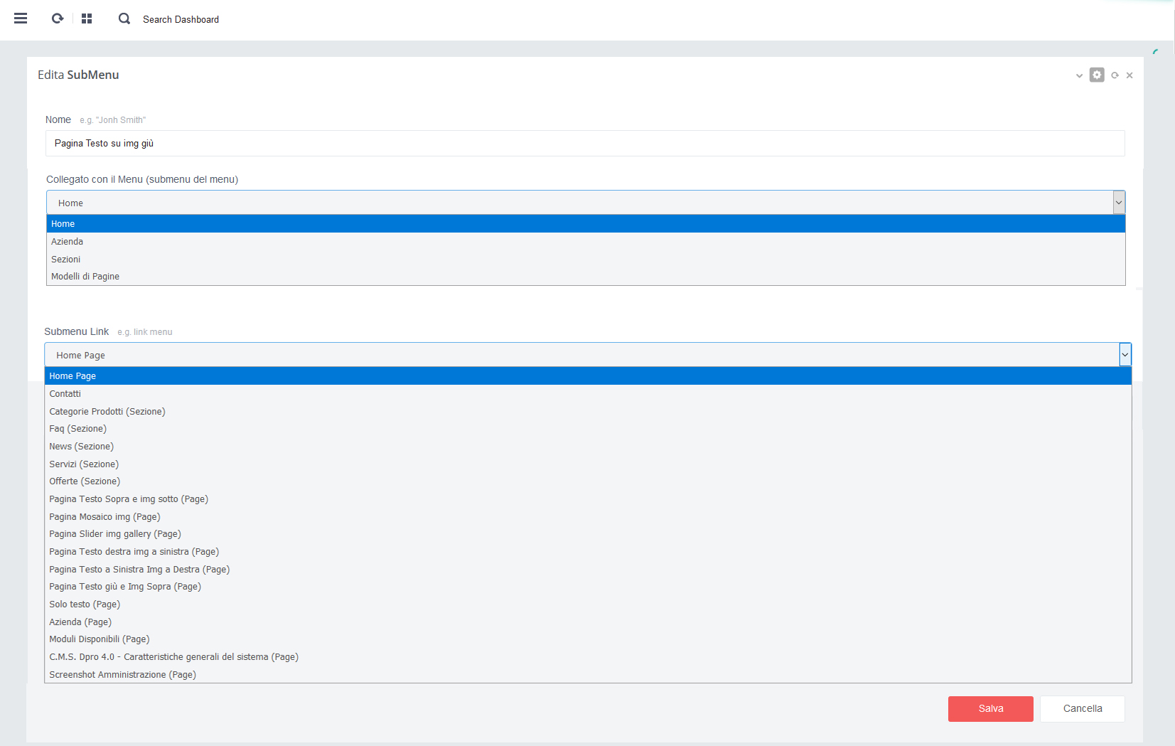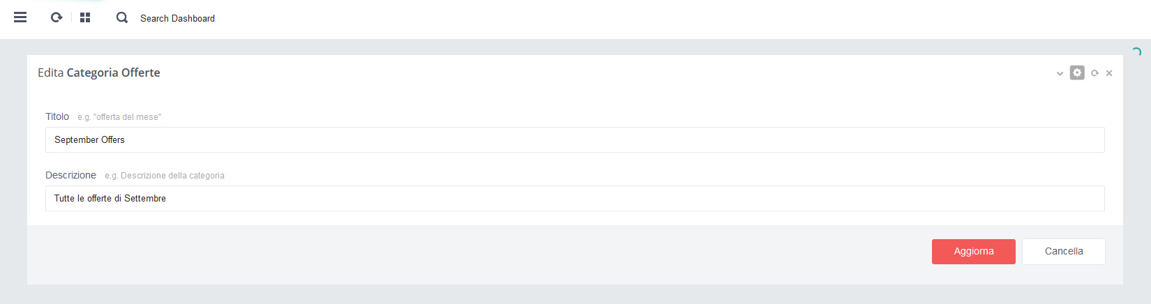- - Click su pulsante rosso 'Salva' per salvare i dati alla pagina in aggiornamento