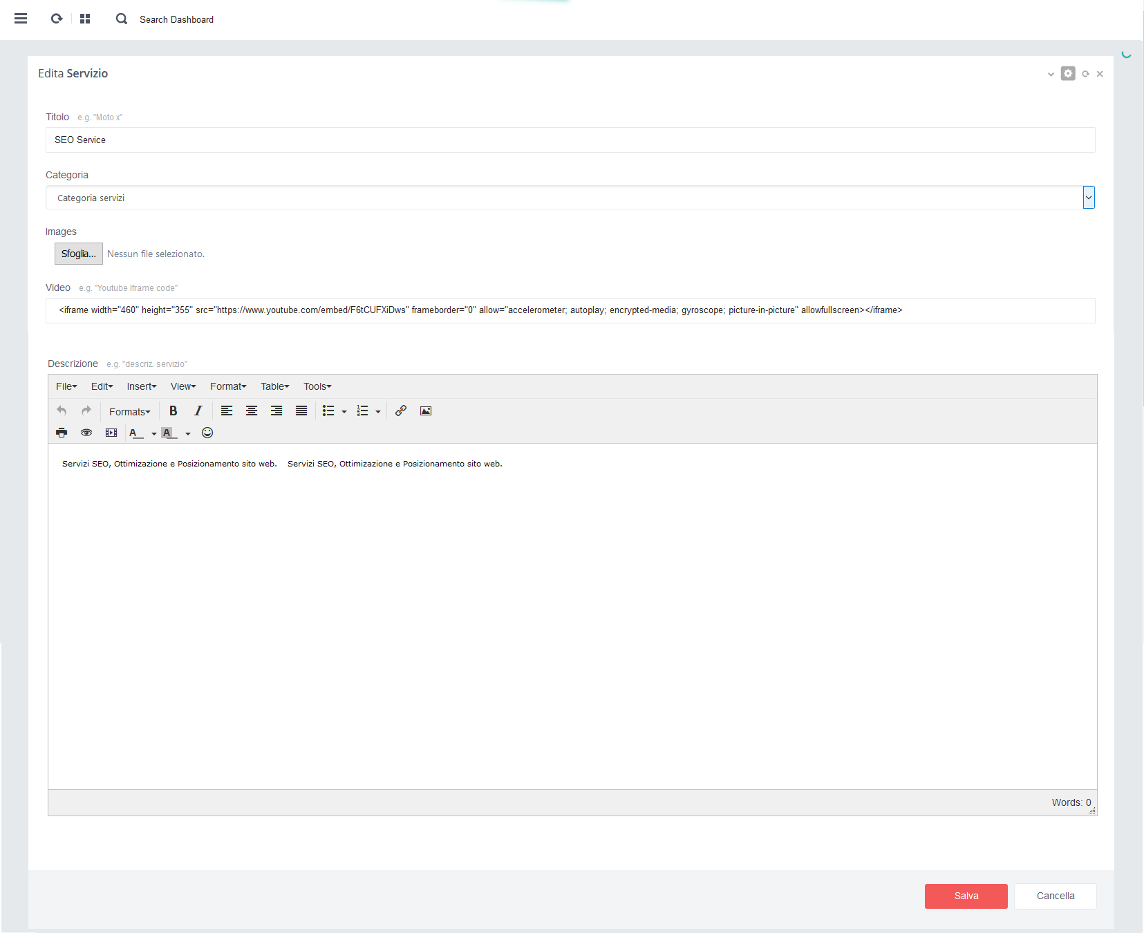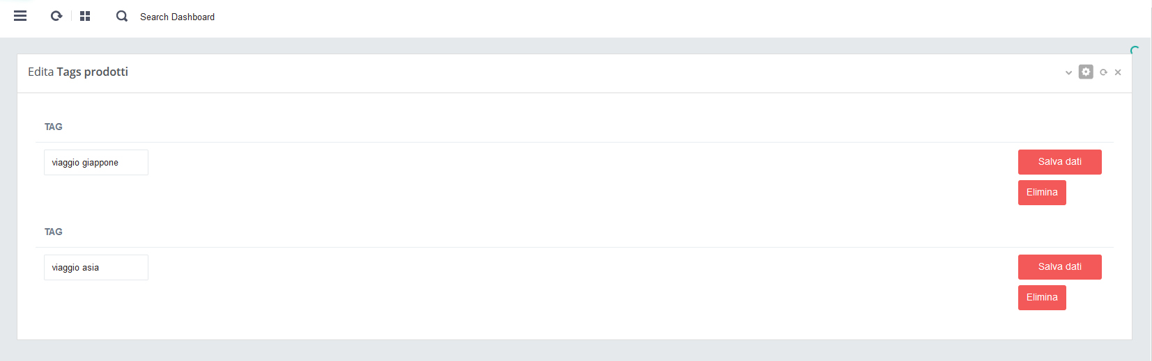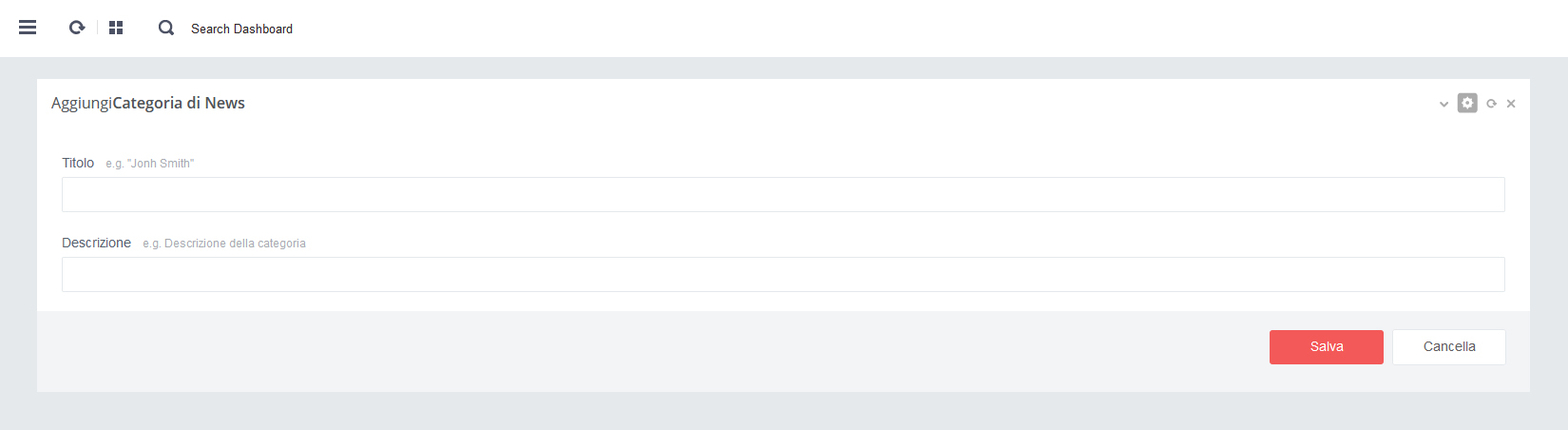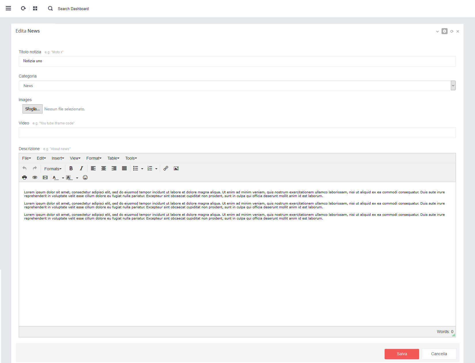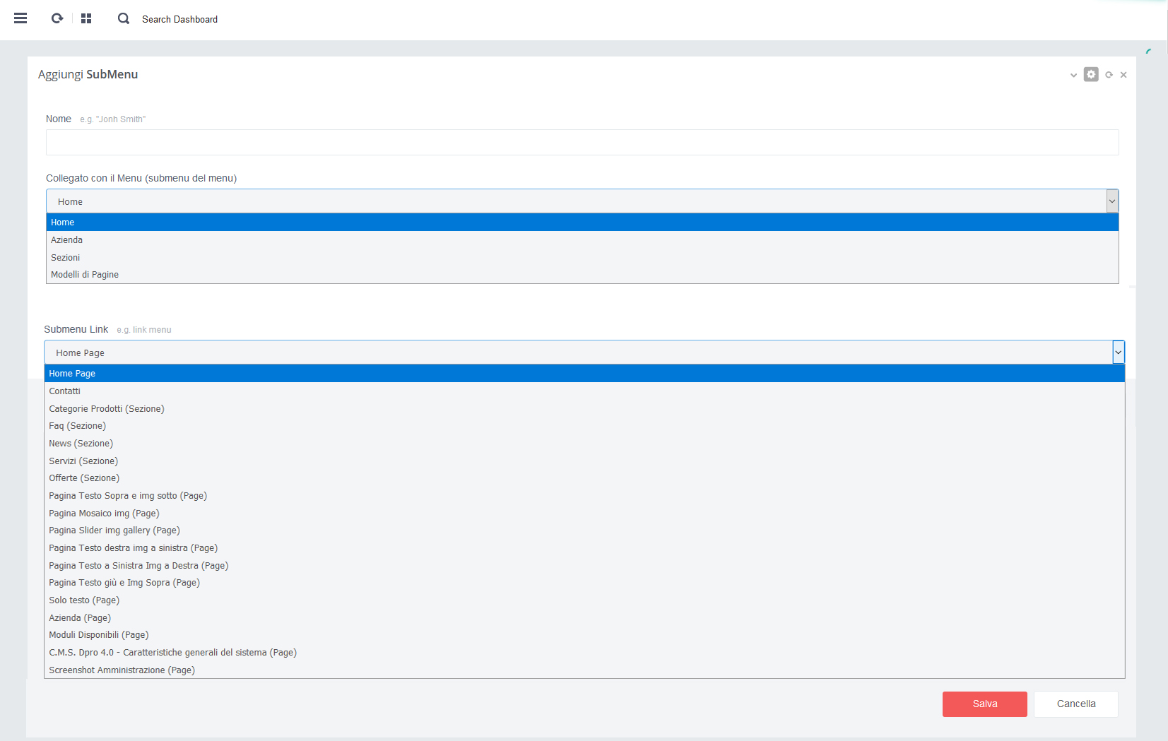 - - Click su pulsante rosso 'Salva' per salvare i dati alla pagina in aggiornamento