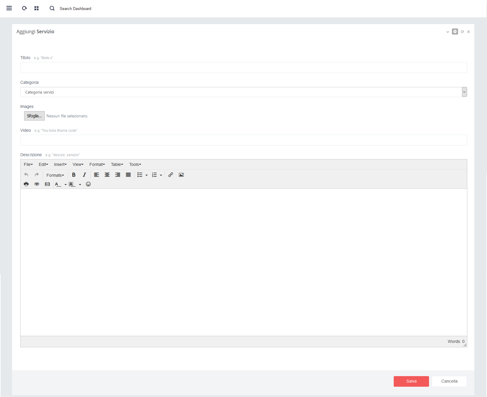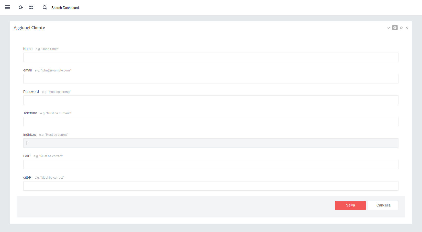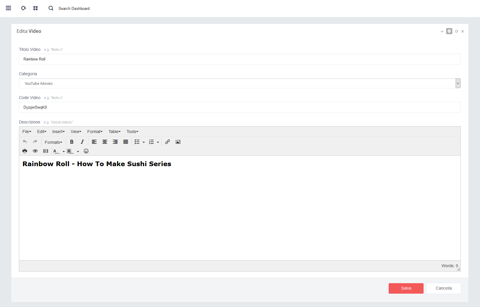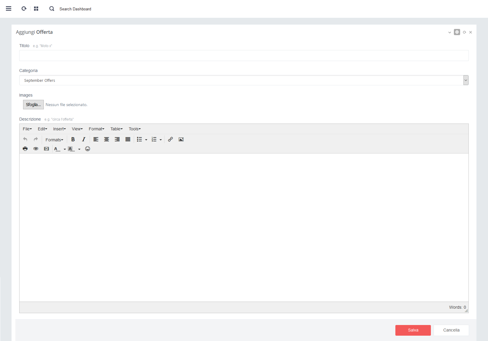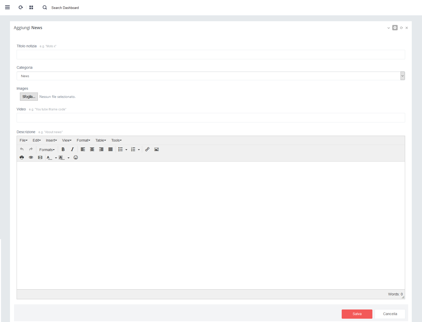 - - Click su pulsante rosso 'Salva' per salvare i dati alla pagina in aggiornamento