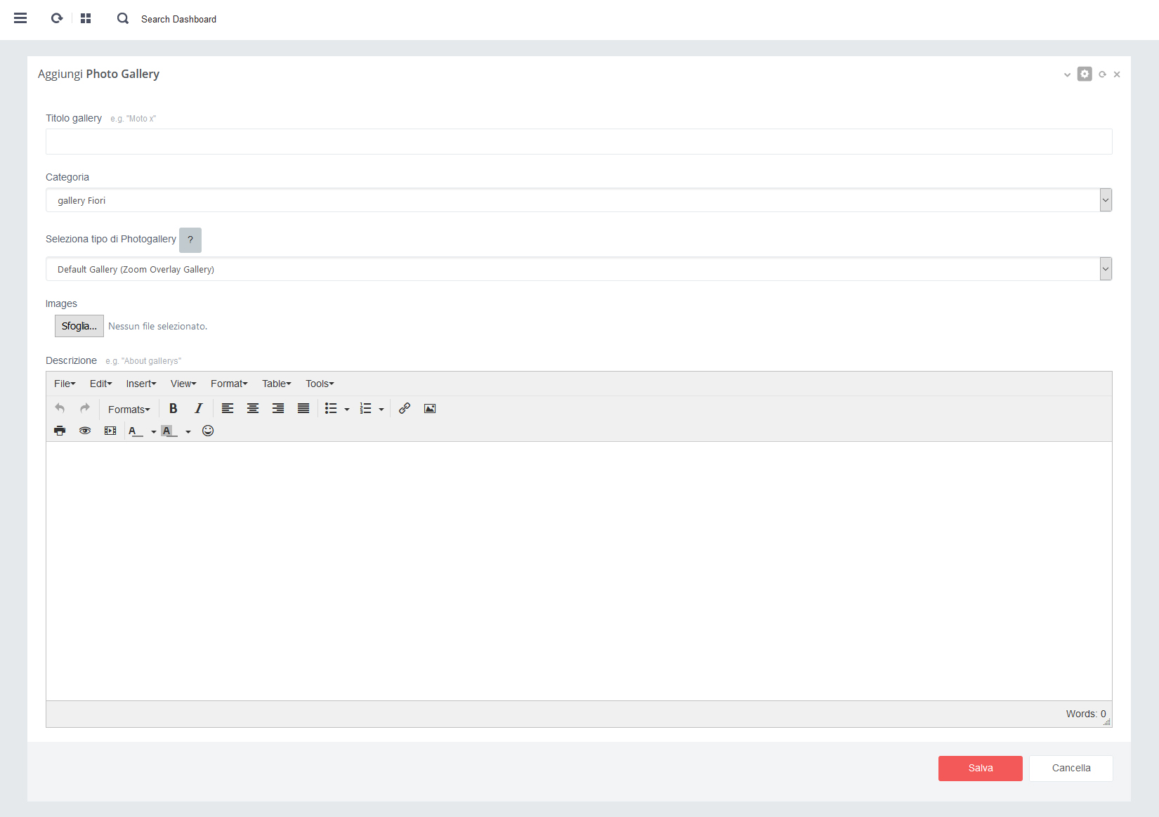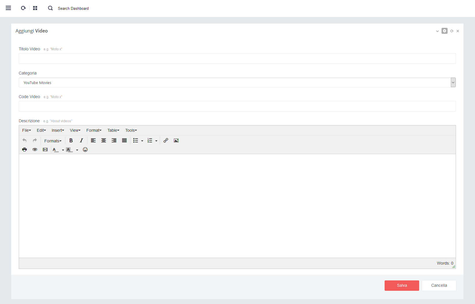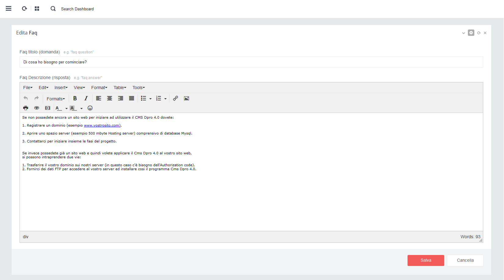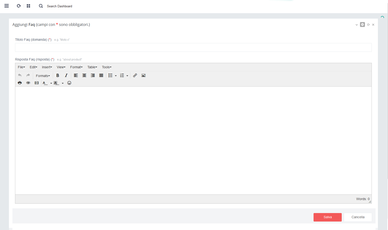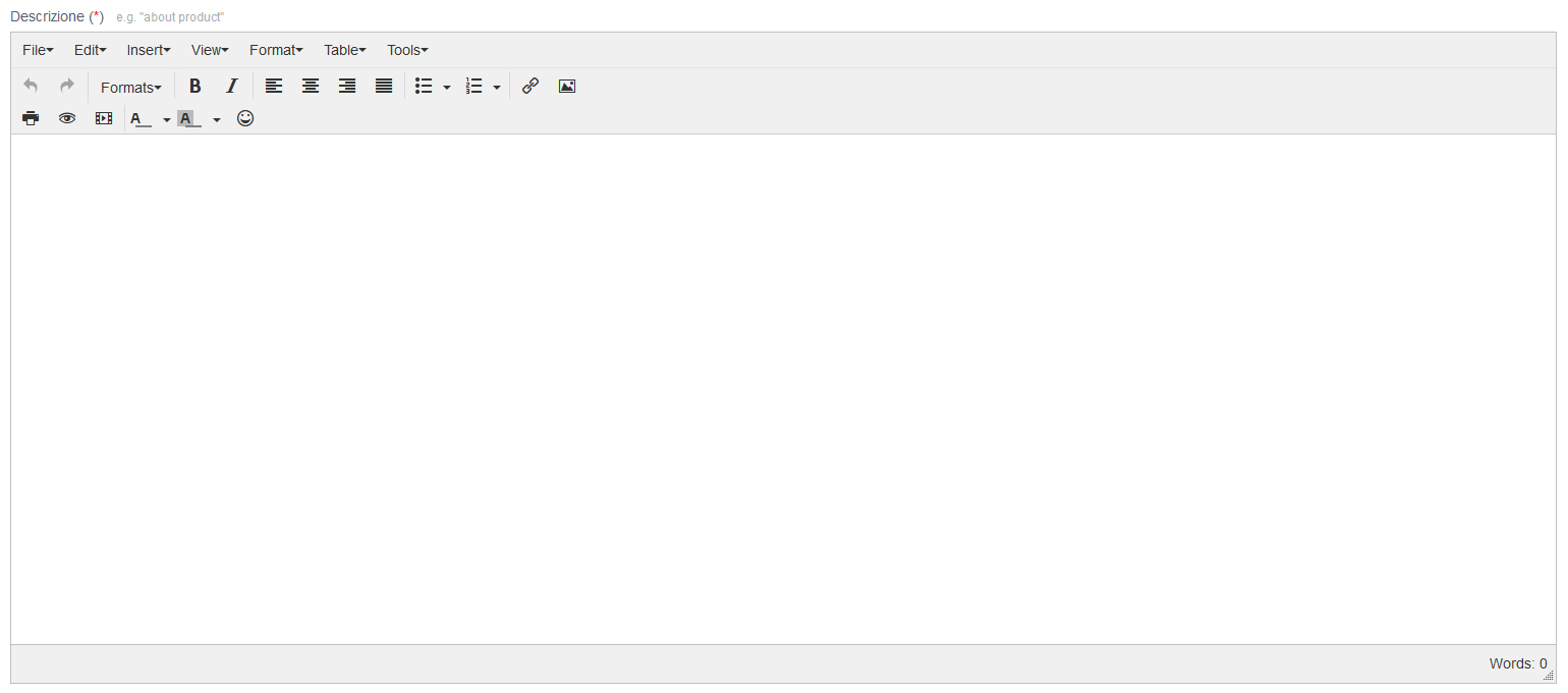 - L'Editor è presente in tutte le sezioni dove sia contenuta una Text area