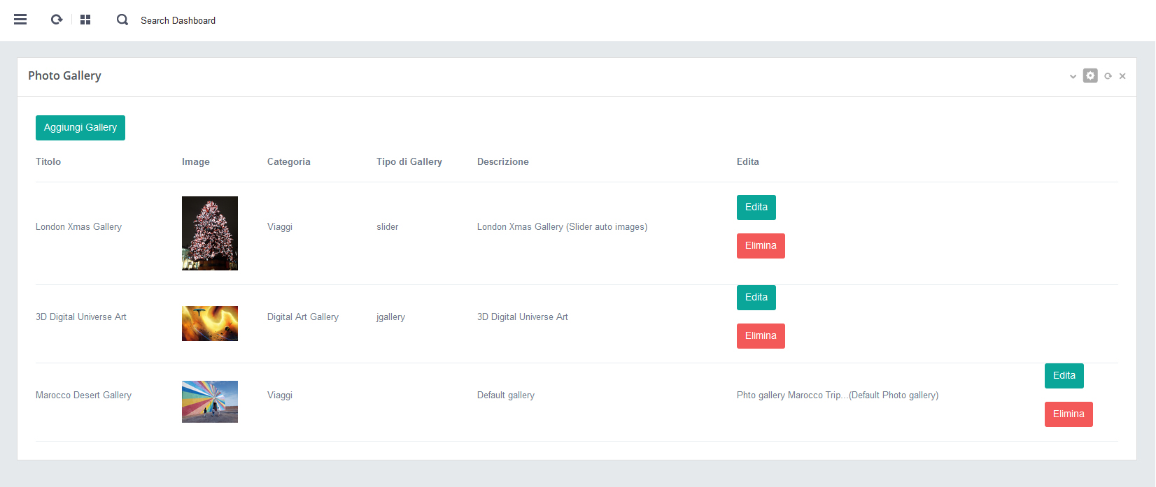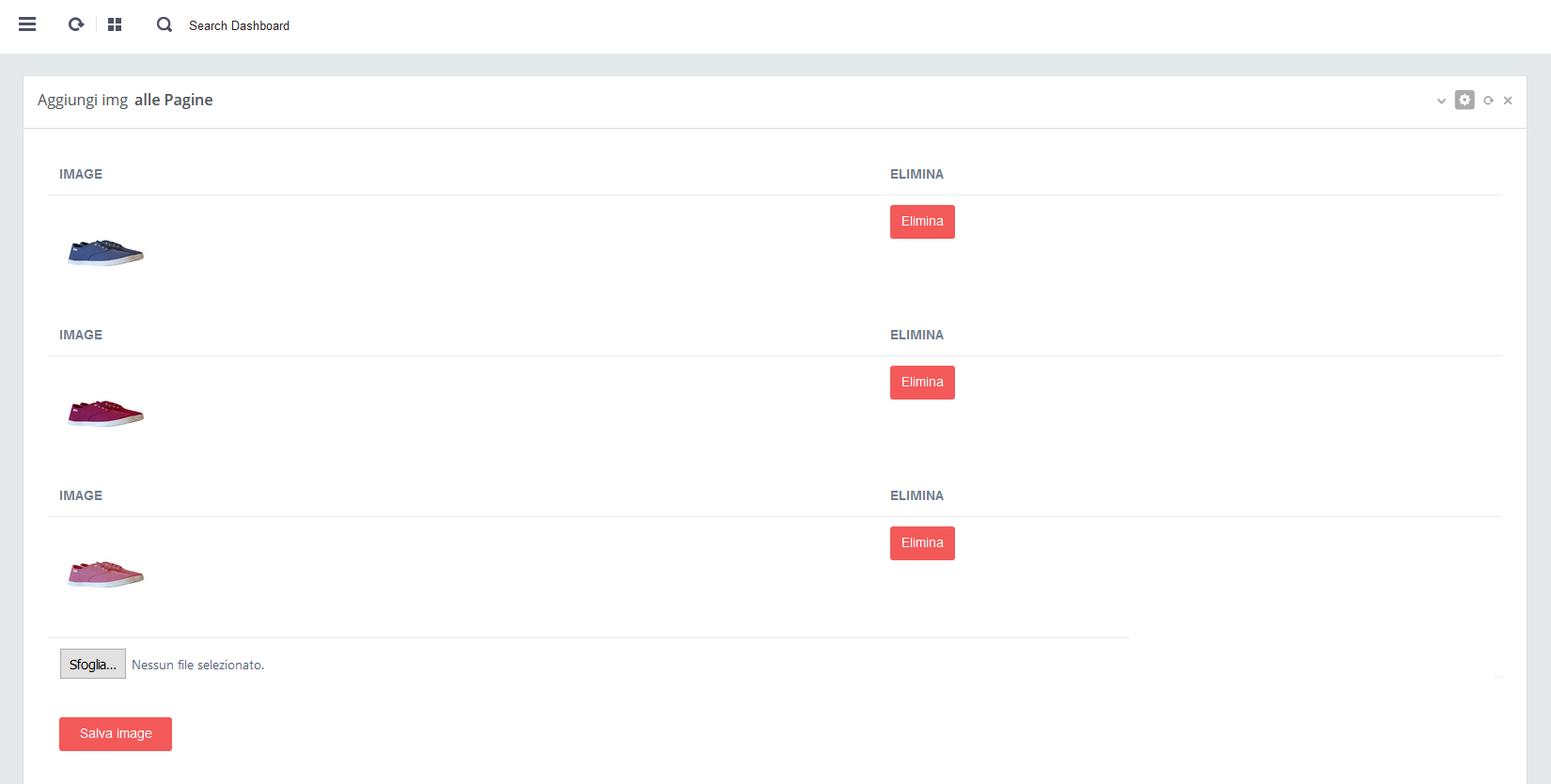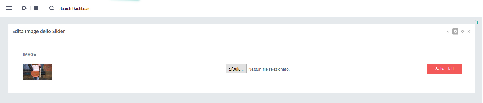 - A. Nell’elenco delle img slider inserite (vedi img sopra) Click su pulsante rosso
