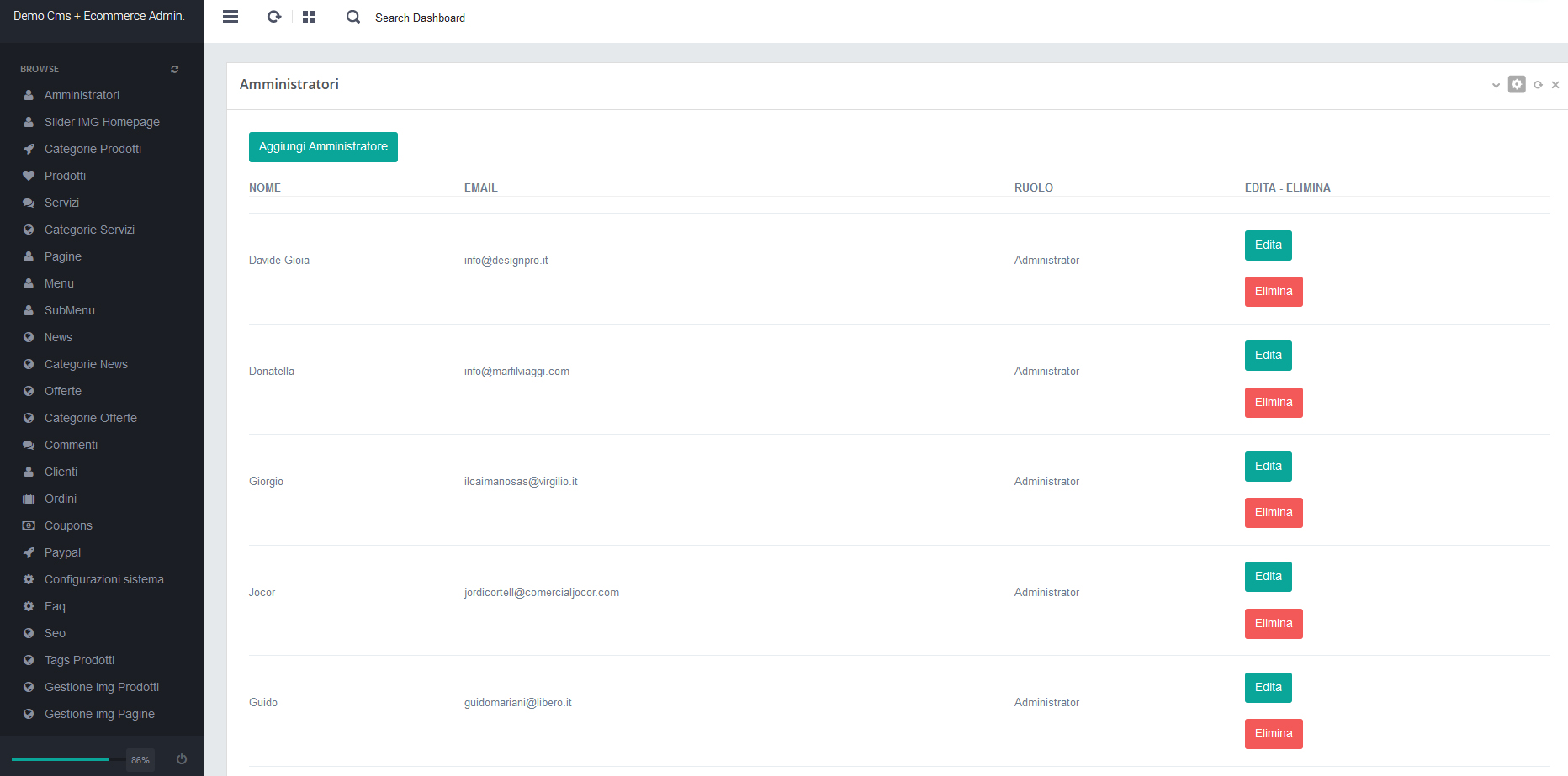 - Per accedere alla gestione amministratori, click sul menu di sinistra: "Amministratori"