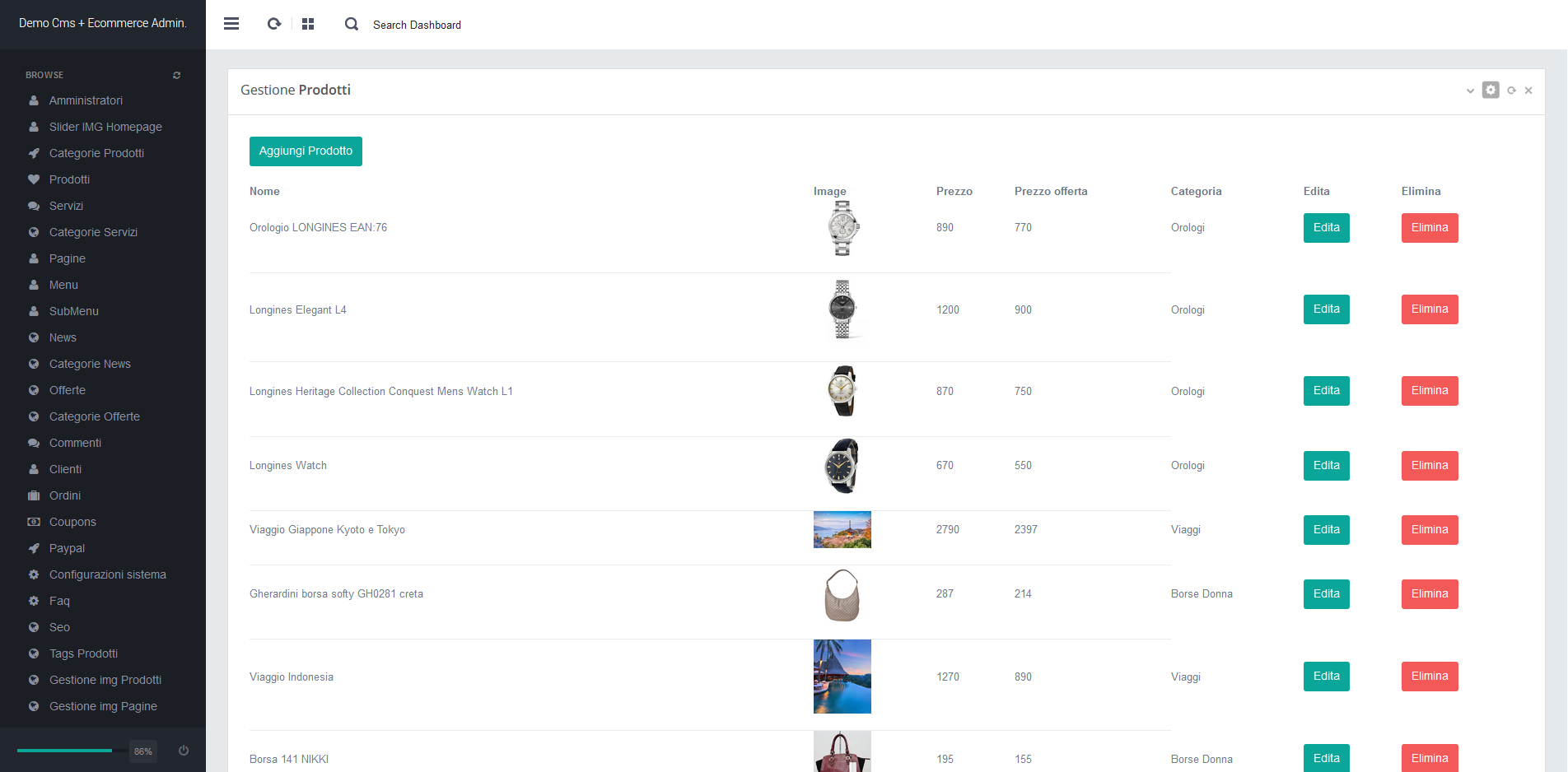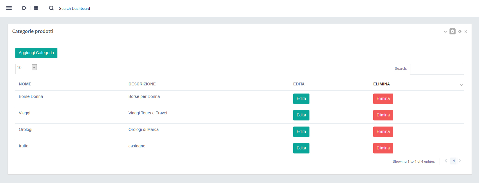 - Tutti i Prodotti aggiunti nella sezione Prodotti verranno automaticamente