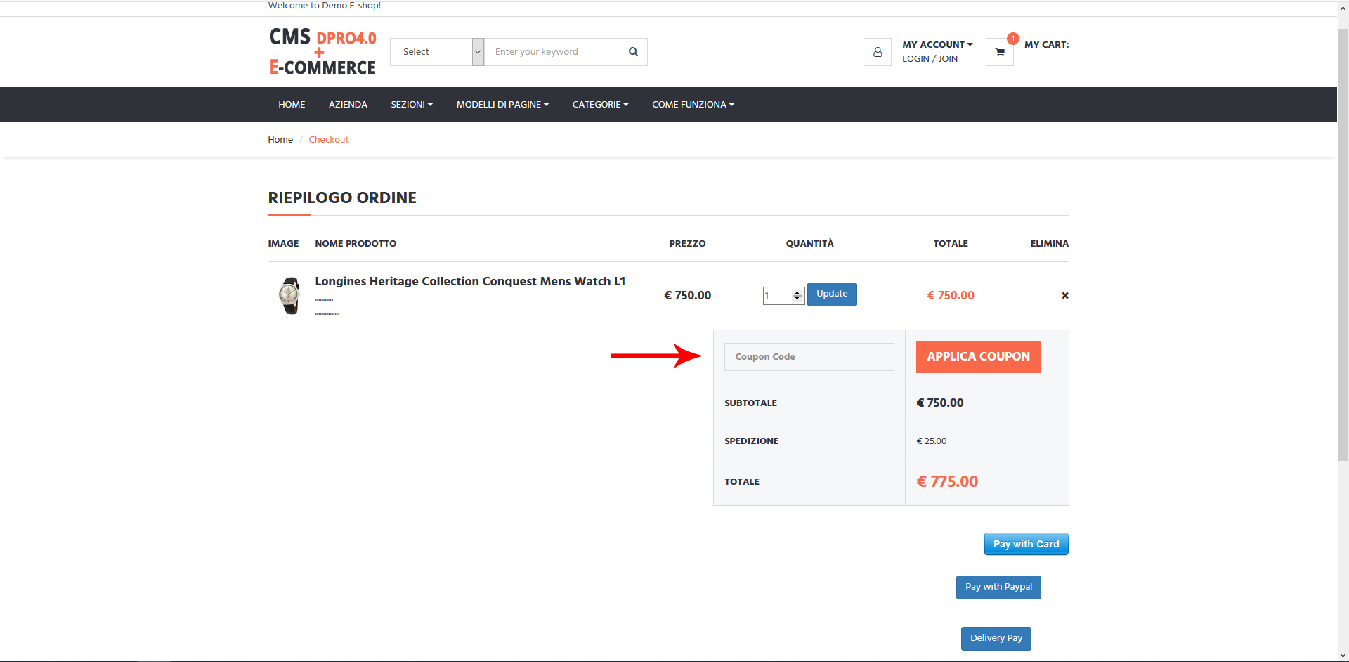 - AGGIUNGERE UN COUPON (O CODICE PER SCONTO)