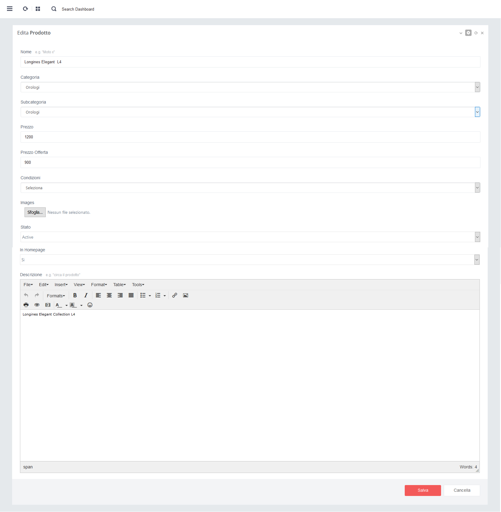 - B. Campo "Nome" inserire il nuovo nome del prodotto