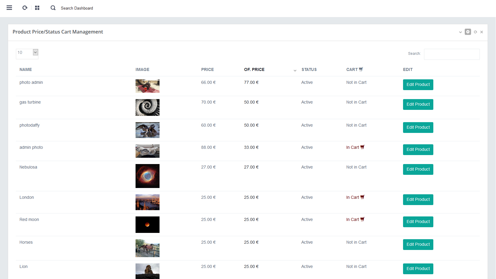 - Per accedere alla Sezione Gestione Prezzi/Stato Cart, click sul menu di sinistra: "Gestione Prezzi e Stato Prodotti Cart"