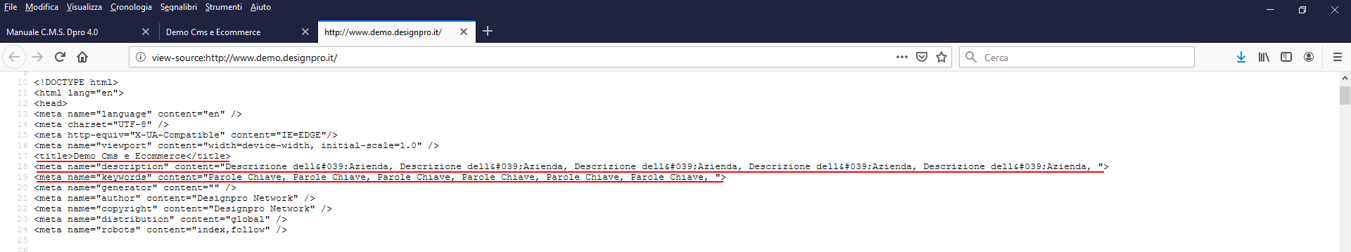 - Attenzione, questo campo è molto importante perchè definisce il "TITLE DEI META" del