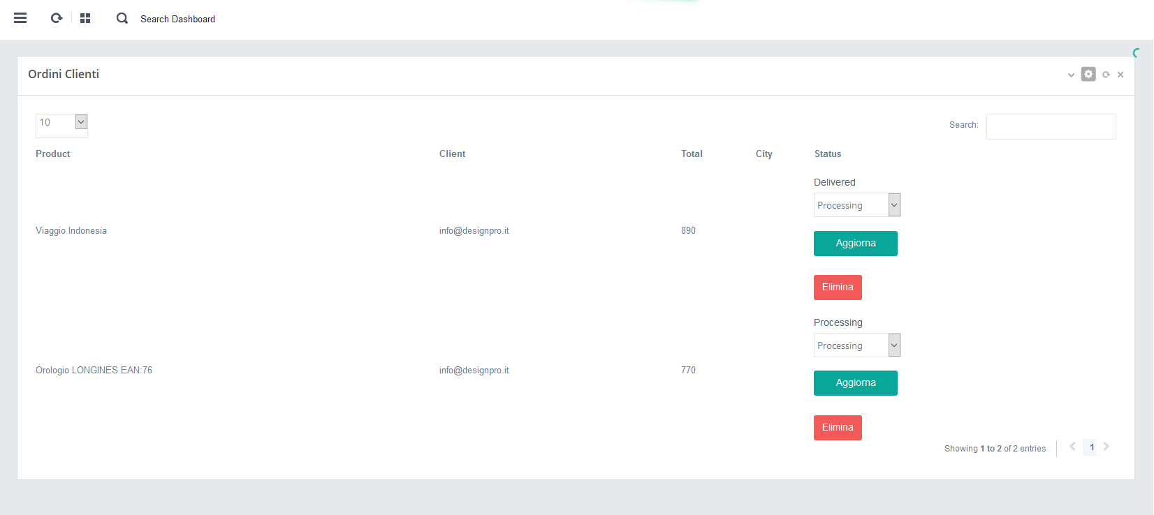 e dalla pagina "Ordini" e tutti gli altri eventuali forms di ricezione email impostati