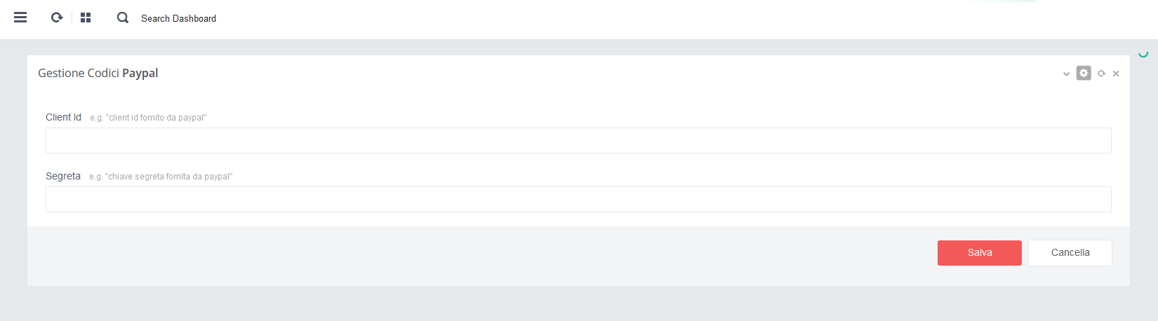 - GESTIONE DEI CODICI PAYPAL (Id Cliente e Secret key)